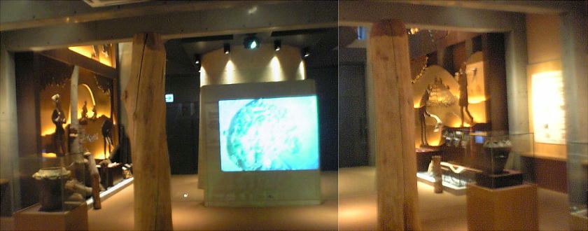 入館料を払って、博物館のエントランスホールから展示室へ入ると、真っ暗な空間に上から円筒形の光の筒が降りてきてからだ全体