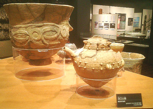 煮炊き用の深鉢、盛りつけ用の浅鉢に加え、釣り手や注口のついた土器が現れる。貴重な蜜やさけを入れて祭祀儀礼用に使われたと