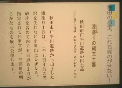 この「北の縄文 文化回廊展」には、御所野遺跡の博物館でお目に掛かった。