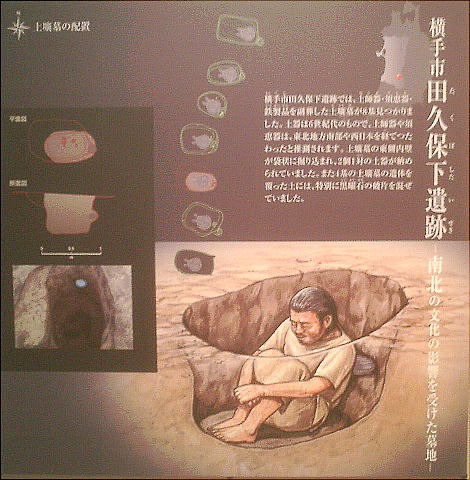 地中に墓穴を掘り、死者を埋葬したお墓で、掘り方が円形・楕円形・小判形をしており、深さは60p〜1mくらいまである。2基