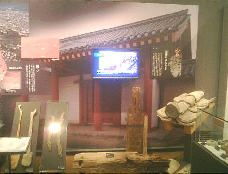 掘立柱建物の門が築かれていた。 長森の中央には、板塀で囲われた平安時代の政庁と思われる建築物の跡が残されている。