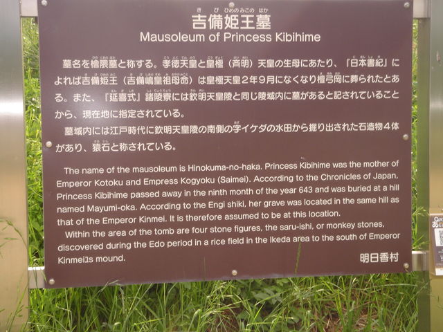 「日本書紀」・・・・吉備姫王は、皇極天皇2年9月に崩御、檀弓岡(まゆみのおか)に葬られた。