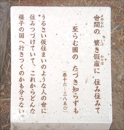 万葉歌碑 巻3-390 紀皇女石川池の北堤(剣池)歌碑建立 昭和52年(1977)