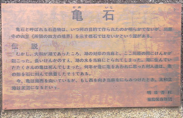 <飛鳥の石造物 亀石・鬼の雪隠・鬼の俎(かめいし・おにのせっちん・おにまないた)>