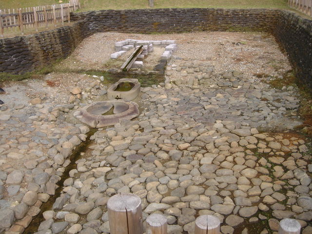 東西15メートル以上、南北7メートル以上の大きな建物跡や砂利敷きの広場(南北約15メートル)を確認した。この建物跡は何らか