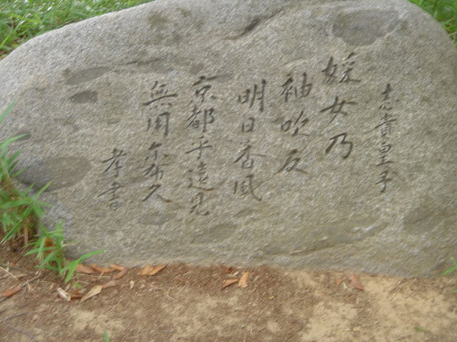 ●剣池のほとりに紀皇女(きのひめみこ)の歌碑。軽の池は橿原市大軽町付近にあったと考えられるが所在が不明で、近くの剣池の堤に