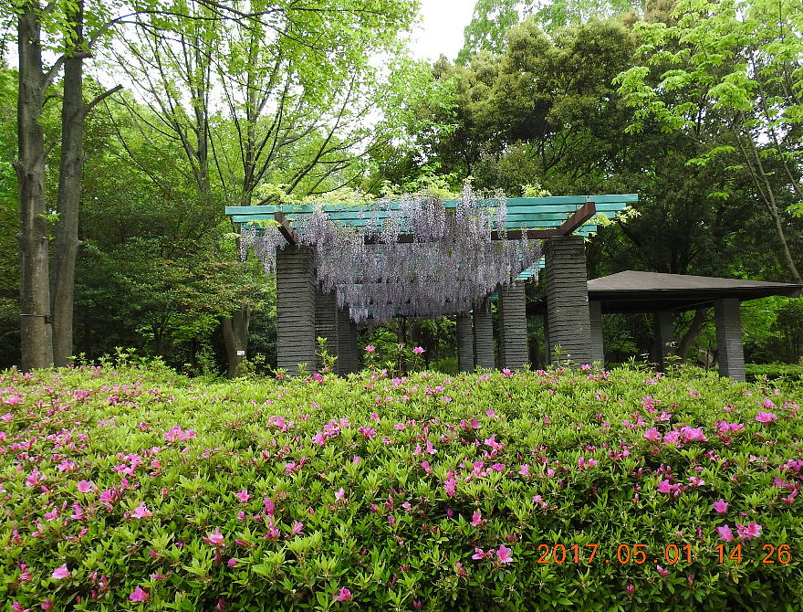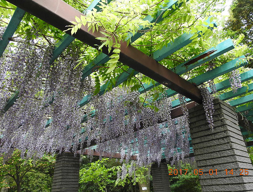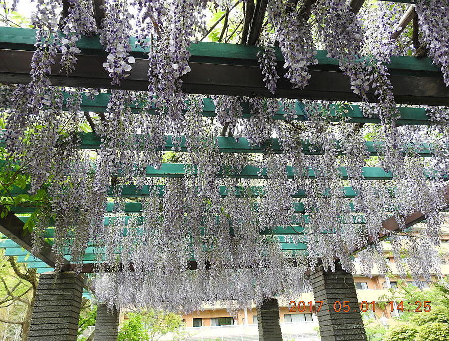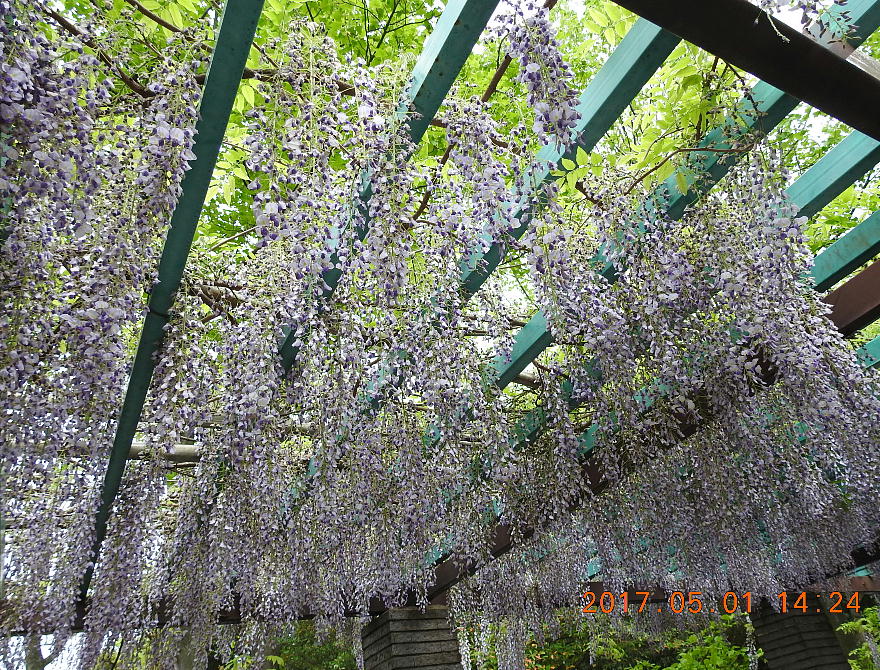 にもこの位の藤棚があって、この藤の3倍くらいの長さで下がっていた。いつだったか、あの藤棚を祖父