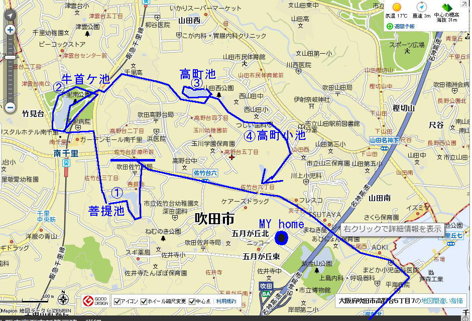平成29年5月14日 @菩提池 −> A牛首ケ池 −> B高町池 −> C高町小池