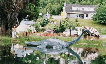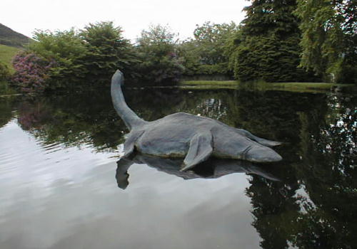 小さな水たまりのような池があって、その中にネッシーのでかい模型が置いてある。