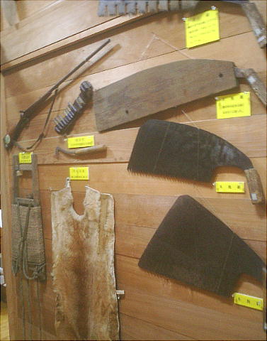 の民具を日常生活用具・農具・山樵用具・漁具に分類して、展示紹介している。