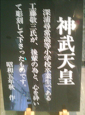 エントランスを入ったところに、なぜか神武天皇の木像が。