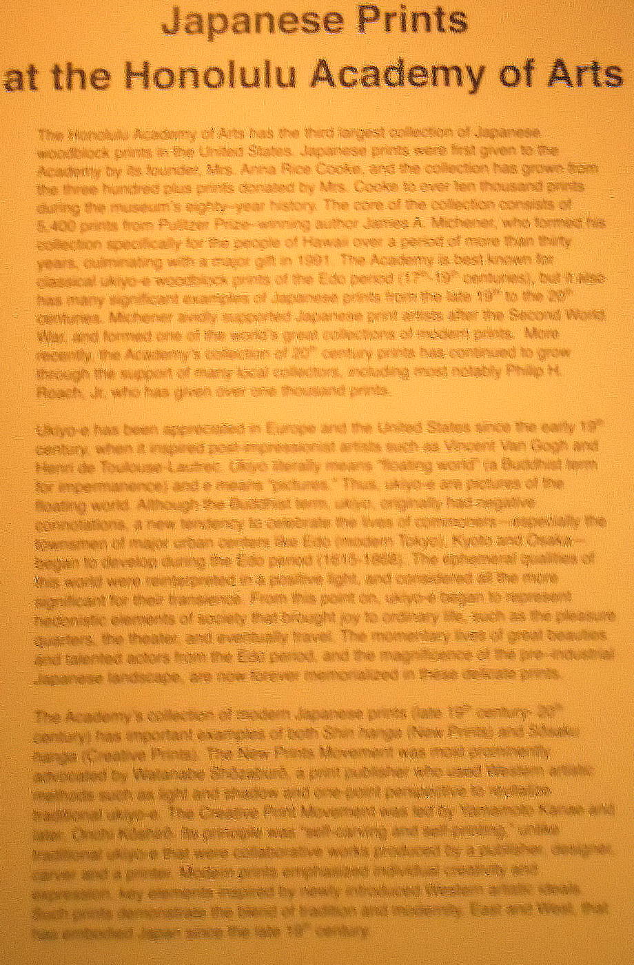 る。このホノルル美術館のコレクションは、おそらく他のどこよりも優れているであろう。絵画と紙を使った作品がコレクションの中心