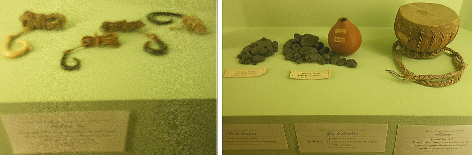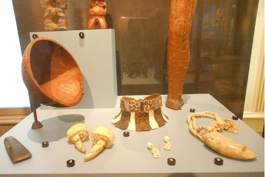 イトを彫刻したヘイティキなどがある。変わった所蔵品としては、人骨で出来た耳飾りやヘア ジュエリーもあった。