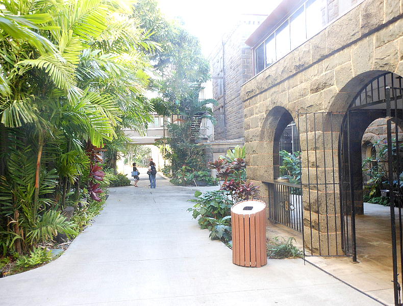 ではハワイに関する書籍や記念品が販売されている。敷地内は結構広く、色んな草花がうっそうとしている。日本語ツアーもあり、参