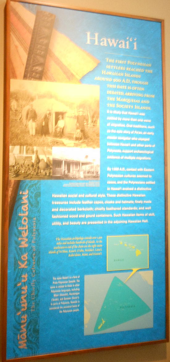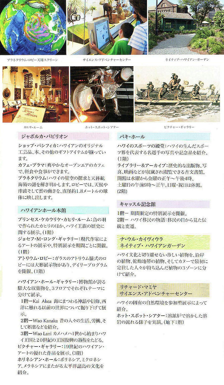 チュラル・ヒストリー」があり、それぞれ、古代の太平洋諸島での人々の生活、社会、宗教についてとハワイ諸島の火山活動や生物形