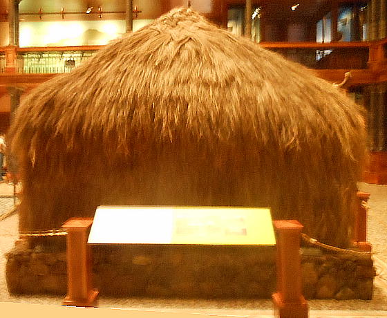 また、1階のフロア中央には実物大のピリハレ(草葺きの家)や西欧人が到来する前の情景のジオラマが展示され、遙か高い天井からは、