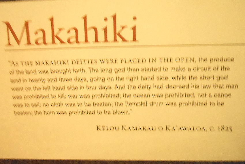 戦いの神を祀ったもので、カメハメハ家に最強の力を与えてくれると信じられた。解説には「先祖代々の崇められる軍神(the coveted