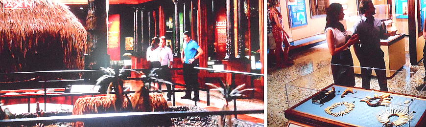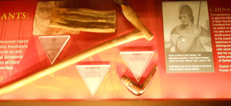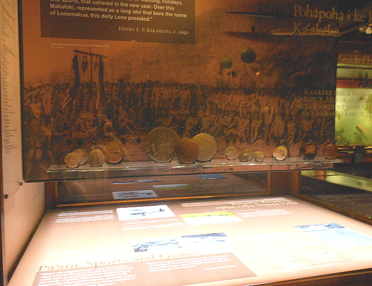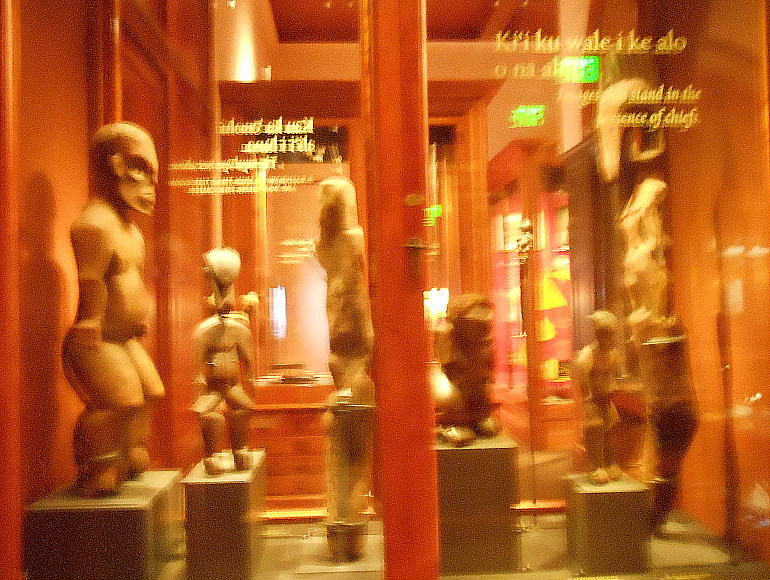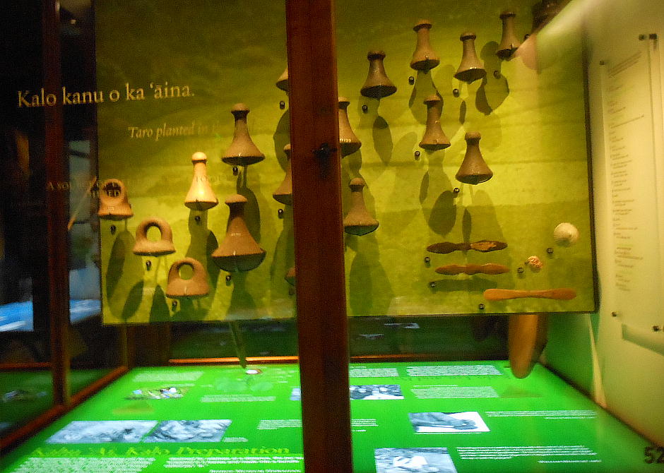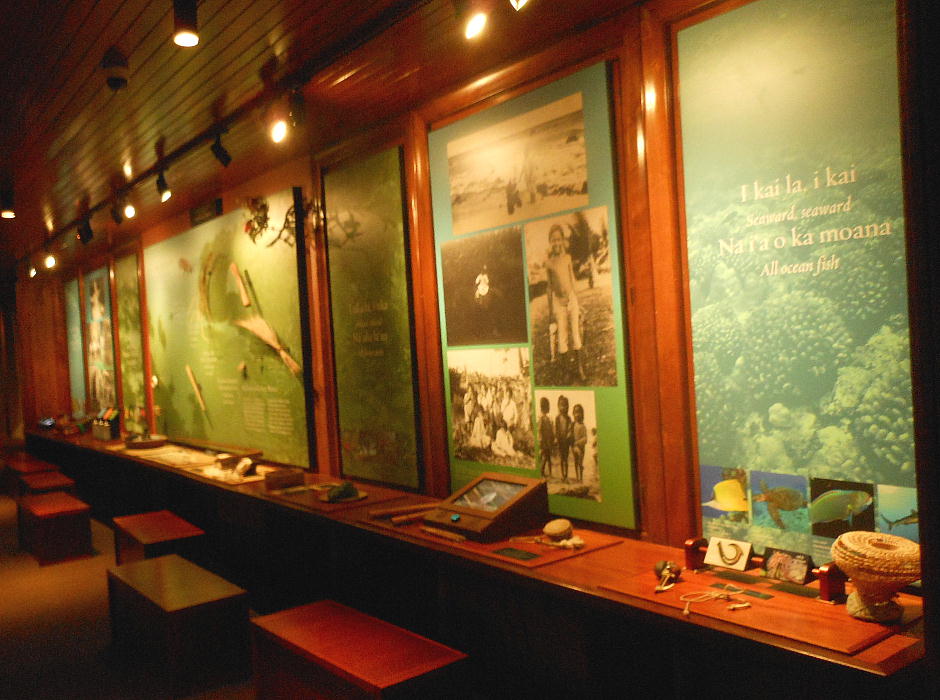 式の造りで、1階に西欧人到来以前の古代ハワイ社会、2階に西欧文化と融合し始めた王朝時代、3階に19世紀半ばから流入した日