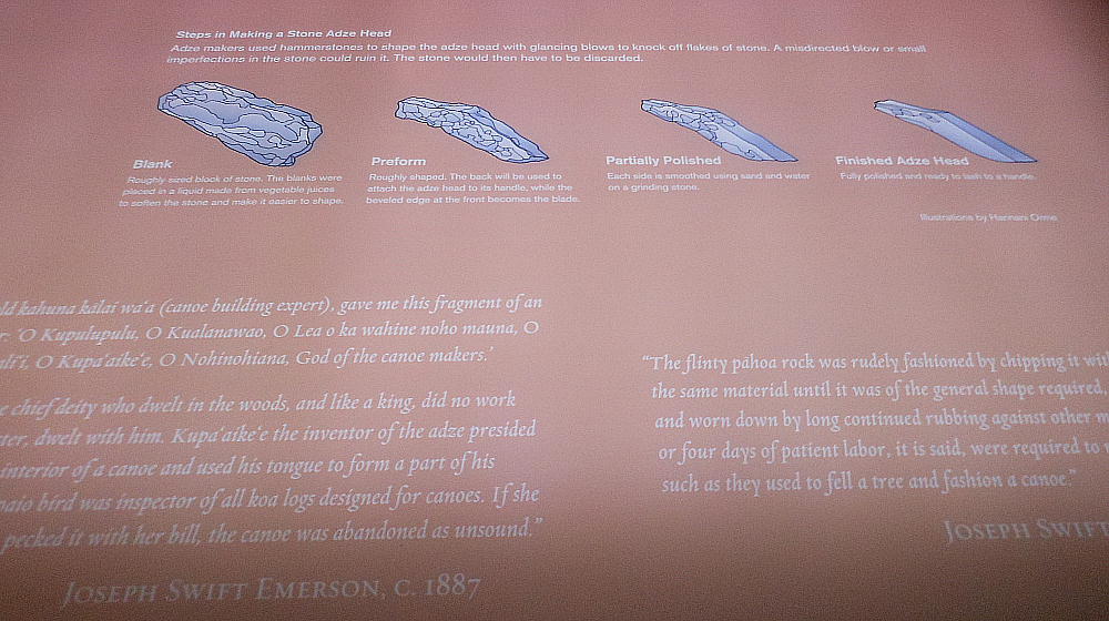 シア文化の奥深さに改めて驚かされる。ギャラリーの壁面にはポリネシア人のルーツを示した地図。ハワイ諸島に最初に上陸した人々