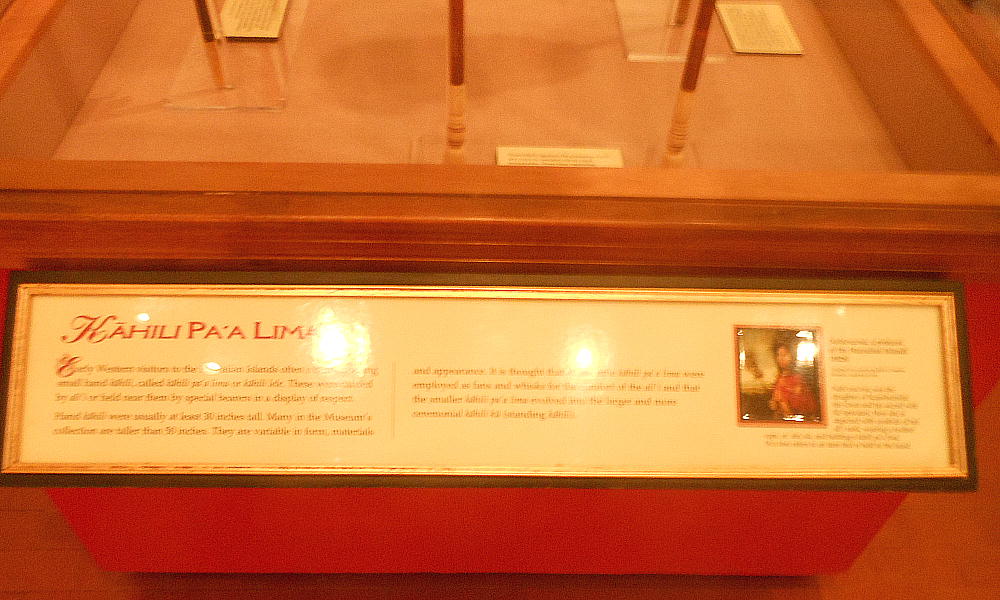人が集まる祝祭事に、王家の人々がどこに座っているのかすぐに分かるように侍従が掲げ持ったものだという。カメハメハ王家伝来の