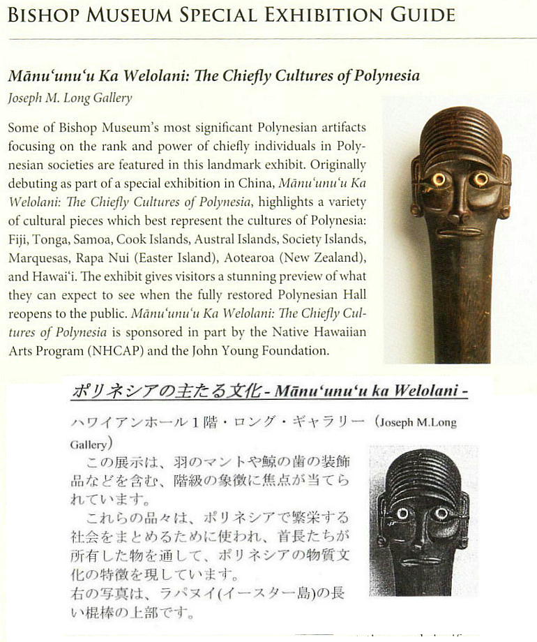 は、約3800キロ南方のマーケサス諸島から訪れたと言われ、時は紀元 600年頃。このギャラリーには、他にもカヌーの模型や釣り具な