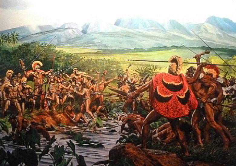昔のハワイの部族間闘争はこのようなスタイルで行われた。