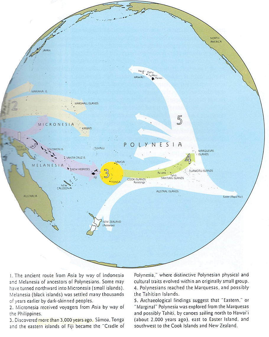 経由してやってきたと見られ、さらに数世紀後 900年ごろに、タヒチ島を中心とするソシエテ諸島からやってきたポリネシア系移民が定