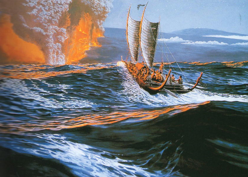 彼らはハワイ諸島へ定住するため、タヒチ島間を断続的に往復し、タロイモ、ココナッツ、バナナといった植物や、豚、犬、鶏といった