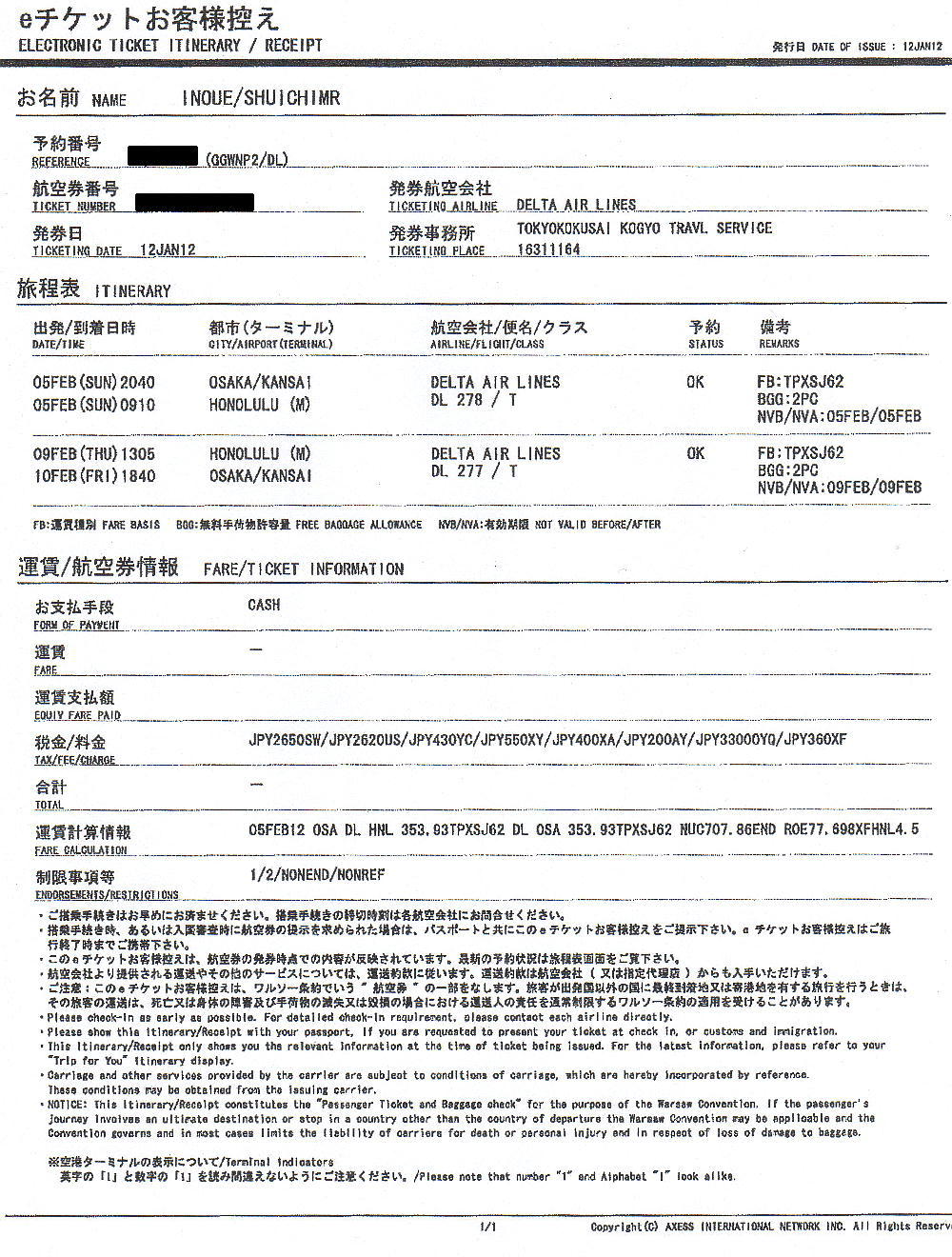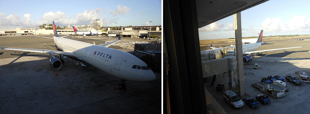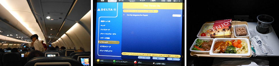 飛行機はデルタ航空の278便。予定より10分早い20:30に関空を離陸した。ホノルル空港までの直行便で、行きは8時間半、