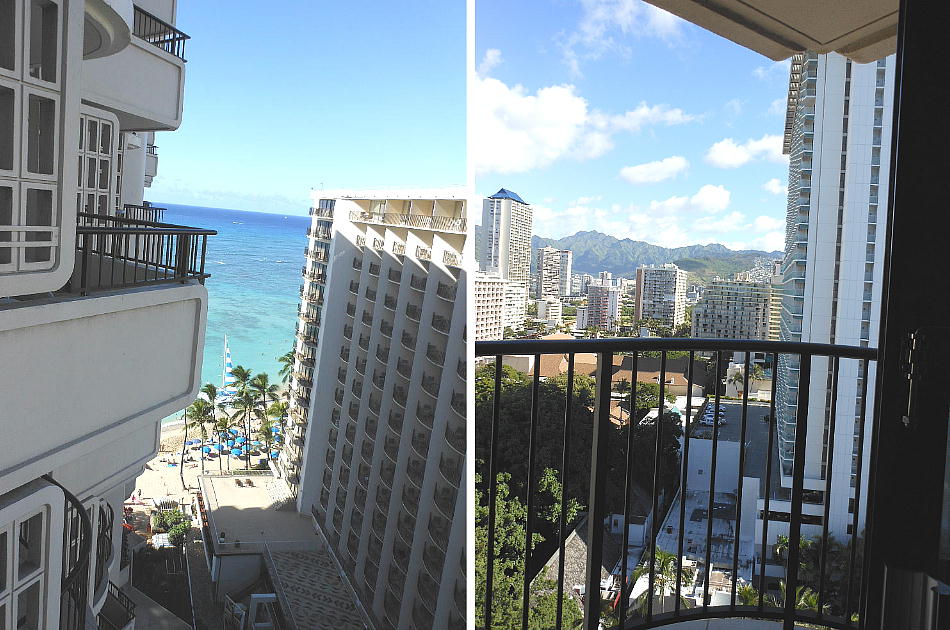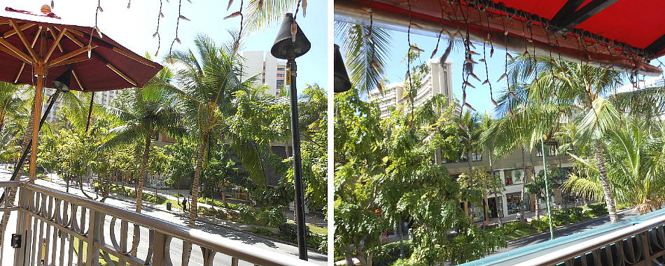 ホテルのすぐ裏50mほどのところがワイキキ・ビーチである。16Fからの眺めは、高所恐怖症の私としては少し怖いが、ワイキキ
