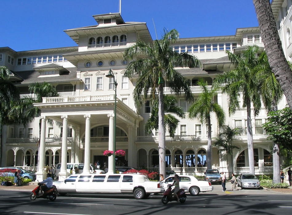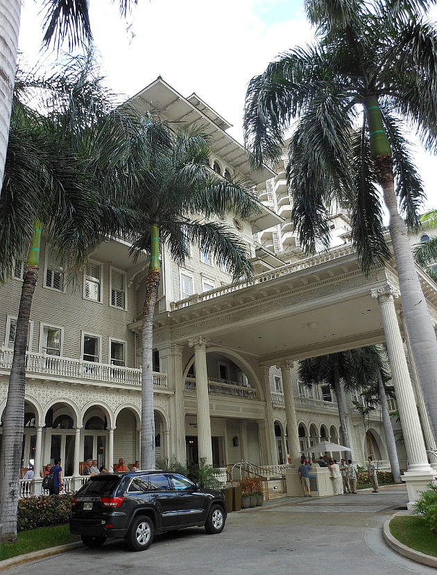 MOANA Surfrider Western RESORT & SPA hotel の正面玄関。裏がすぐワイキキのビーチだ。