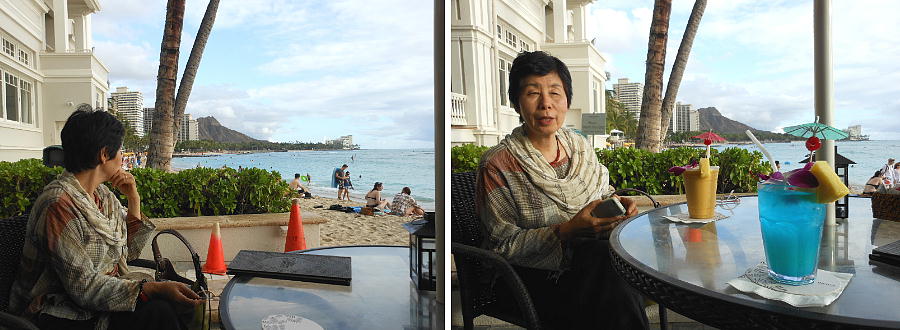 の浜もダイヤモンドヘッドの山並みも見えて、まぁまぁグッド。しばらく休憩して、今日は午後しか時間がないのでパールハーバー周