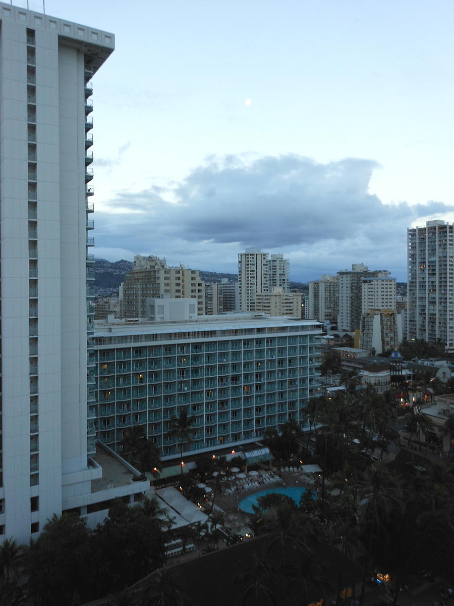 いる。部屋は16Fだが町の喧噪はまだ続いている。午前零時をすぎて、やっとワイキキの浜辺から人もいなくなり、街も静かになっ