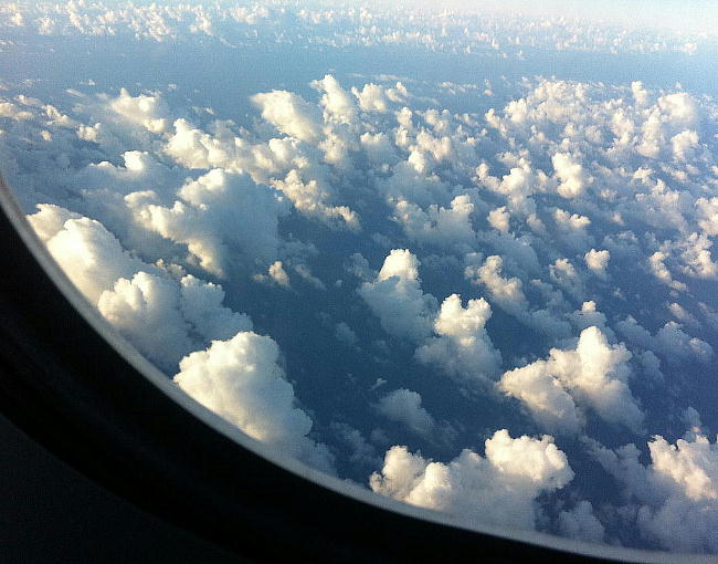 たら初めてかもしれない。3,4時間眠って窓の外に目をやると、雲の上には満点の星。まるでプラネタリウムのようである。こんな