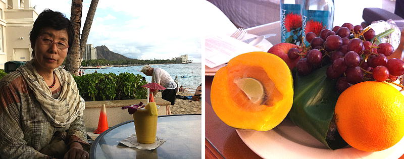 時計を見ると、ハワイ時間でもう朝の7時である。日本とは5時間の時差があり、5時間前日に戻る勘定になる。おしぼりと朝食のサ