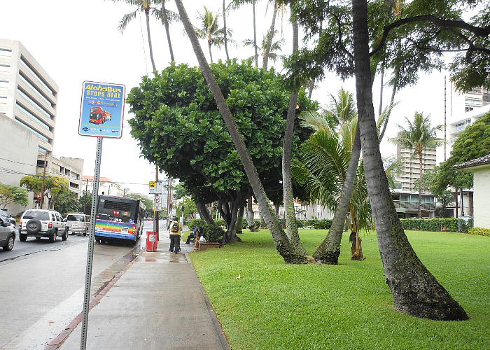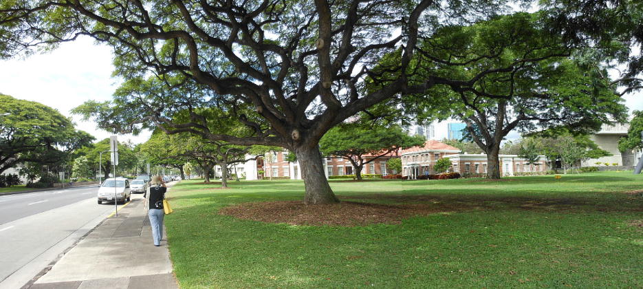 このあたりは気持ちよく歩いて行けるエリアである。至る所にハワイだなぁと思わせる木陰が茂っている。
