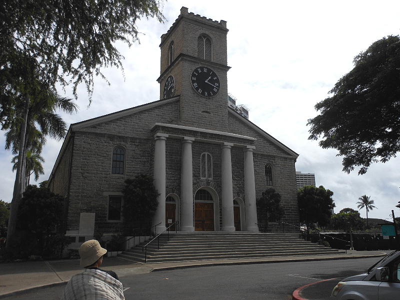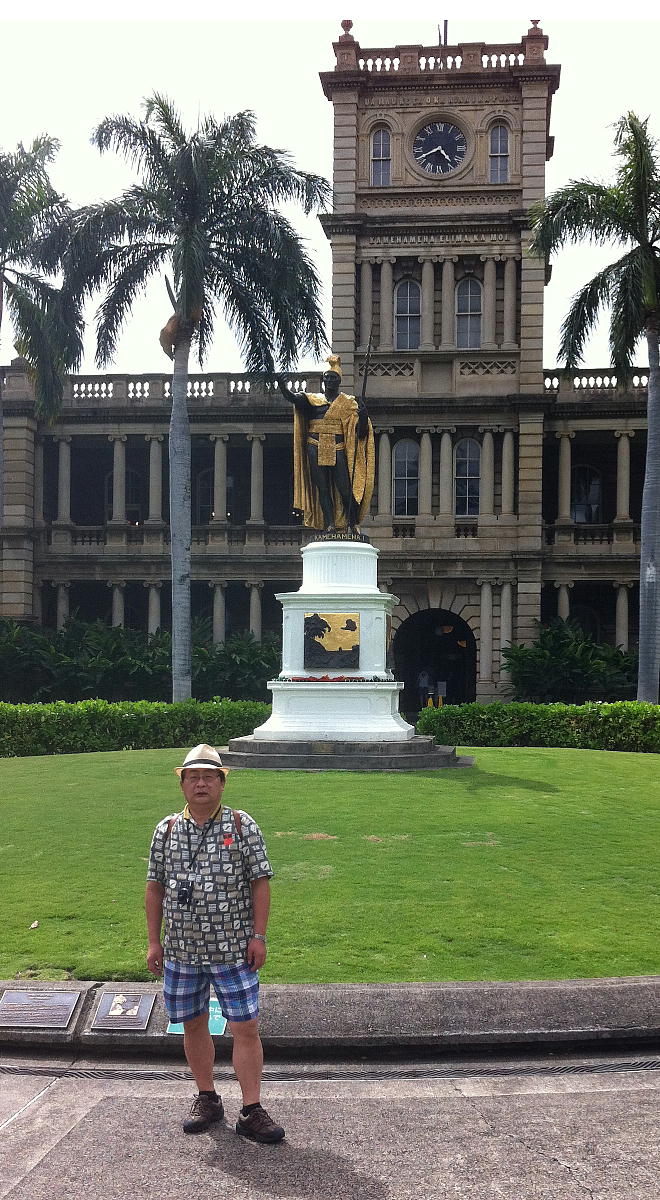 ここをでて数分で「カメハメハ大王像」の立っている広場にくる。大勢の観光客が写真を撮っている。カメハメハ大王はハワイ島出身