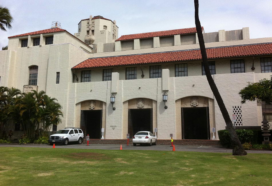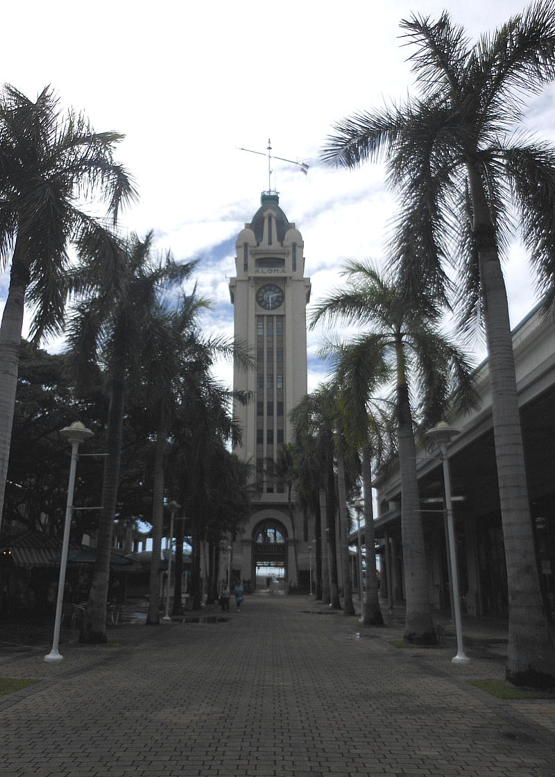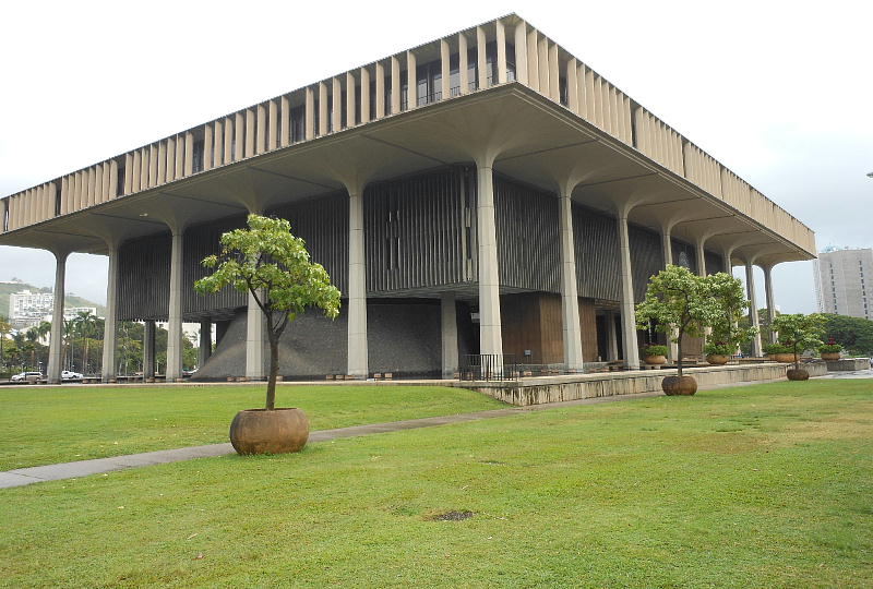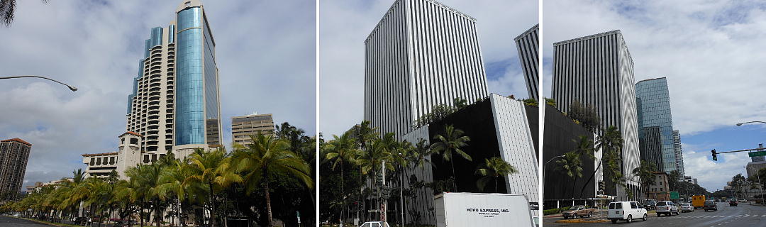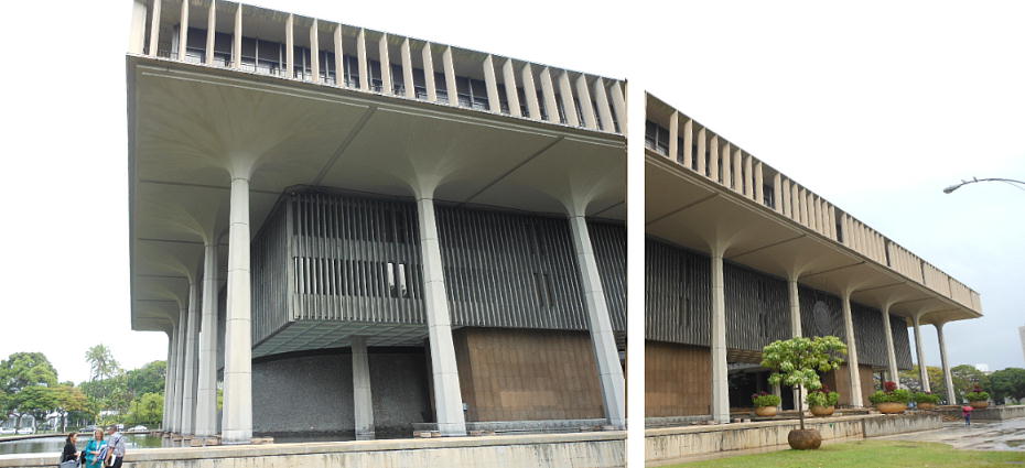 上はハワイ州庁舎。写真の加減で曲がっているがホントは下のようにまっすぐです。