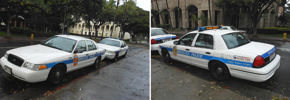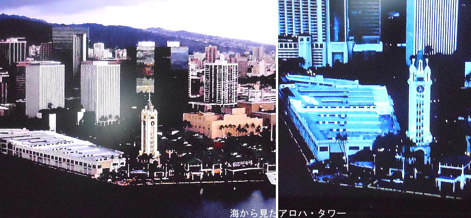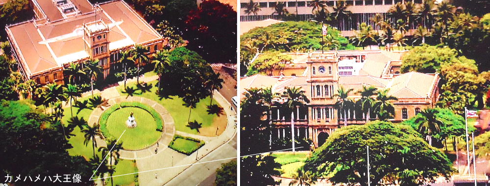カメハメハ大王後ろの建物は、ハワイ州警察本部の建物のようである。「FiveO」(ファイブ・オー)というハワイの特別捜査班を描く