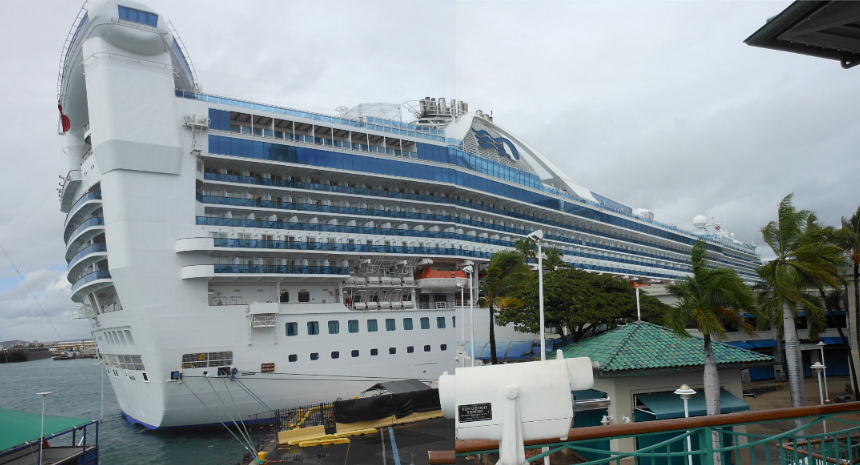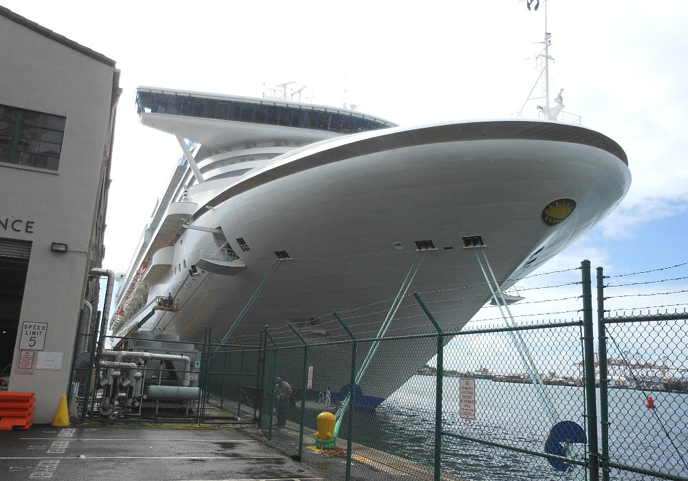 客船が停泊していて、その大きさには驚いた。まるで、巨大なビルがそのまま船になって海に浮かんでいる感じだった。