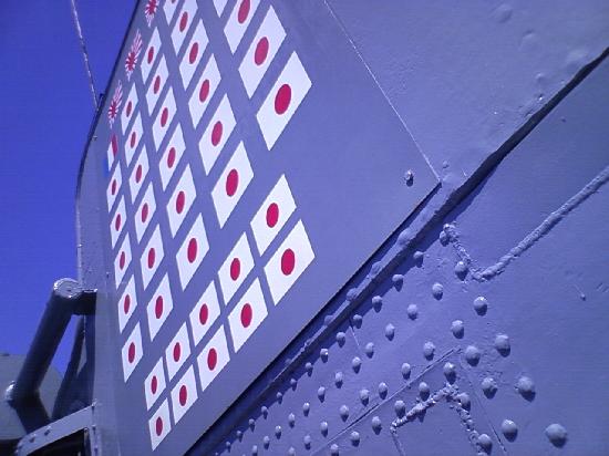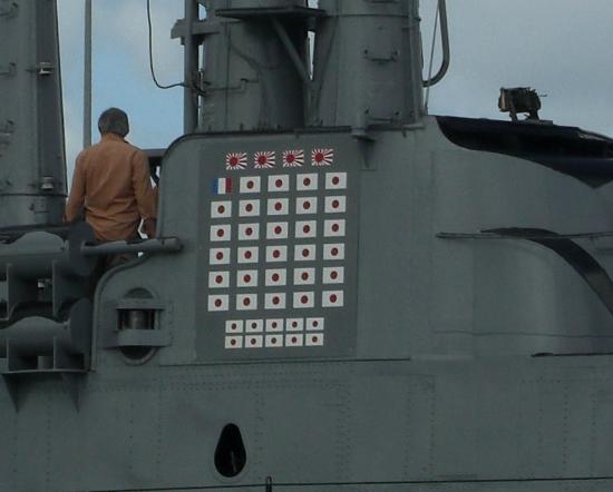 撃沈する毎に日の丸を船体に描いている。全体で1万人くらいの日本人がこの潜水艦に殺されたのだろうか。