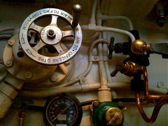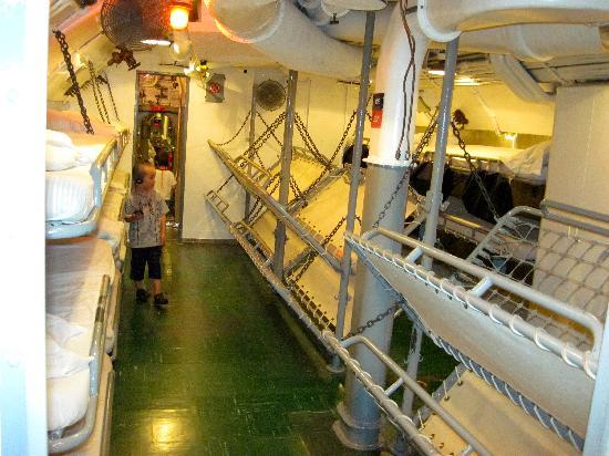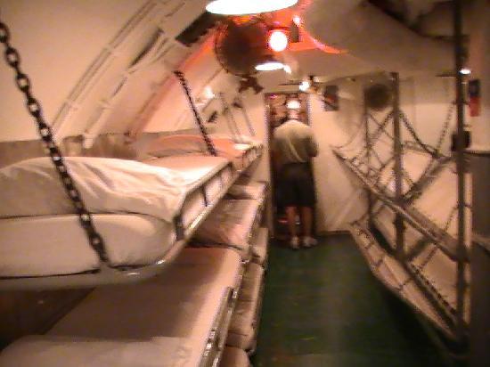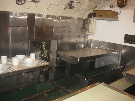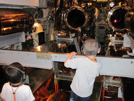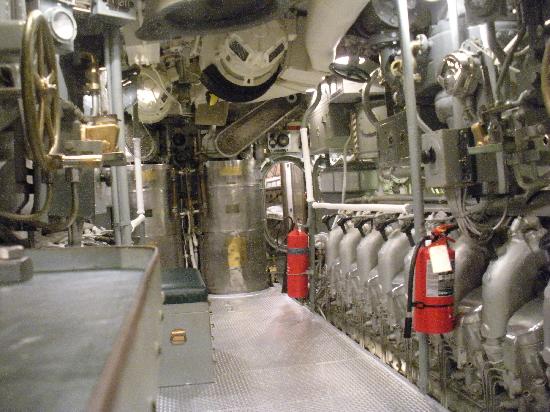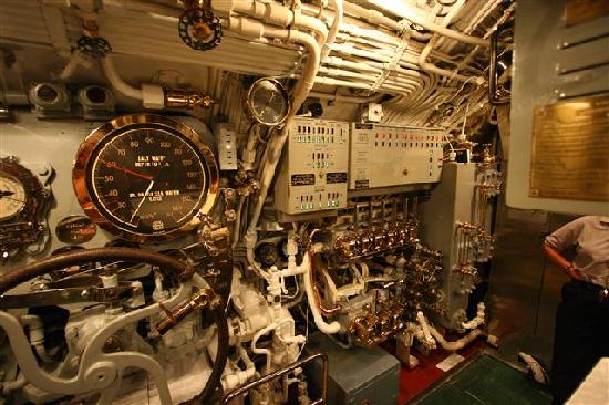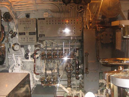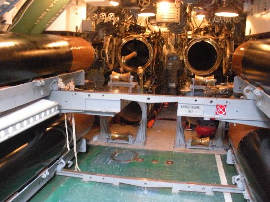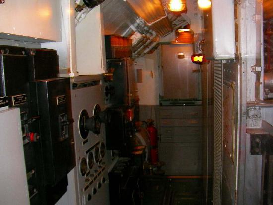 第2次世界大戦中に学童疎開船「対馬丸」を含む多くの船を沈めた潜水艦ボウフィン号。司令塔や無線室などがある。艦内は魚雷発射