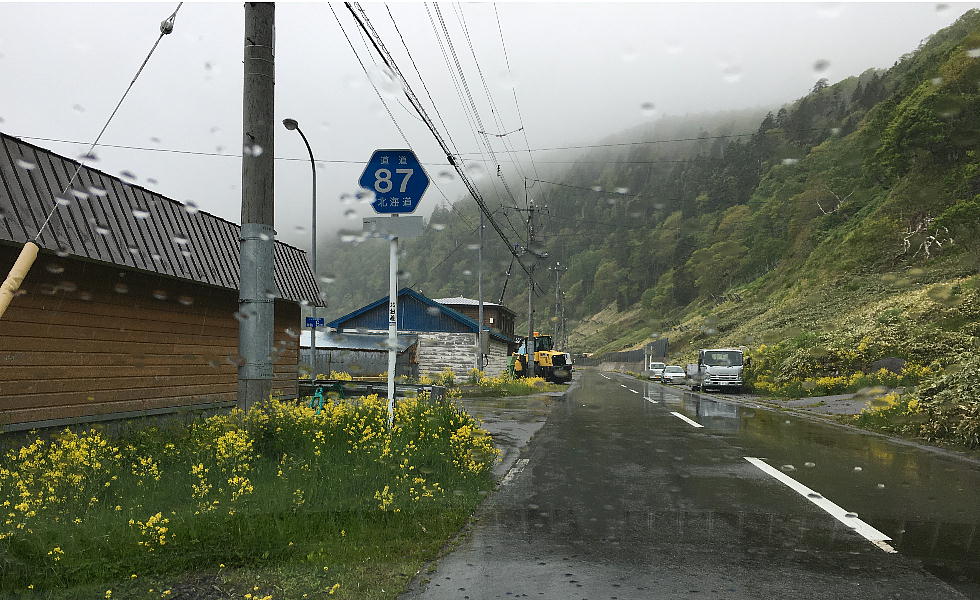 北海道では町に出くわすことがマレである。ここが愛別町。北海道を旅していると、アメリカ大西部を移動して