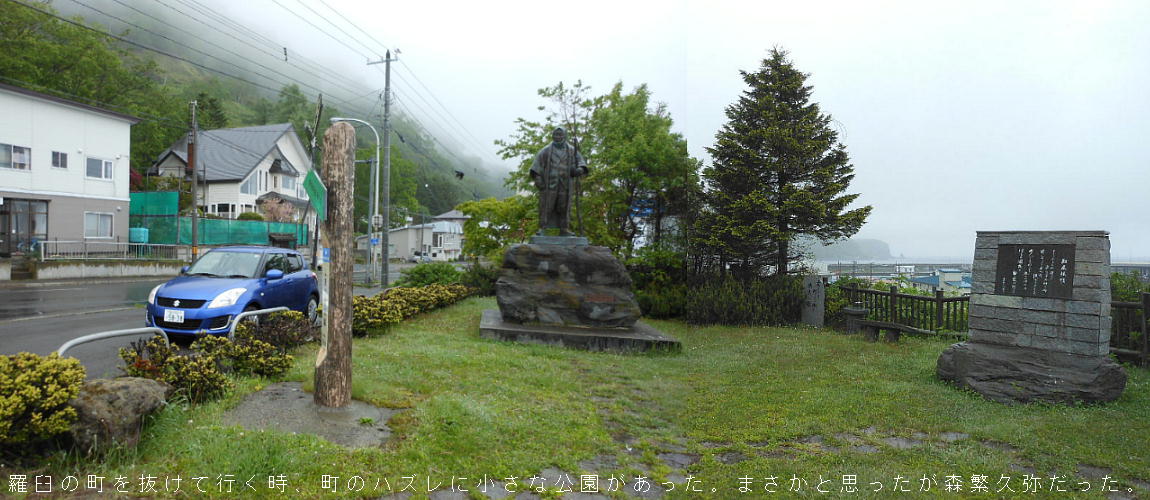 泊まった民宿の前を通り過ぎると、町はずれに森繁久弥の銅像が立っていた。