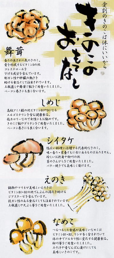「きのこの里」と言うだけあって、夕食はきのこづくし。きのこ鍋も、豚肉野菜がてんこ盛りに後はきのこだ