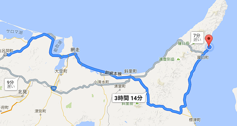 網走を過ぎたら店らしい店もなく、途中コンビニで弁当を買って食べる。今日は結構距離がある(350km?)