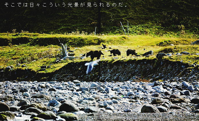 場所だ。漁師が作業している脇を、ヒグマの親子連れが歩いている場面などをよく見る。ここから歩い