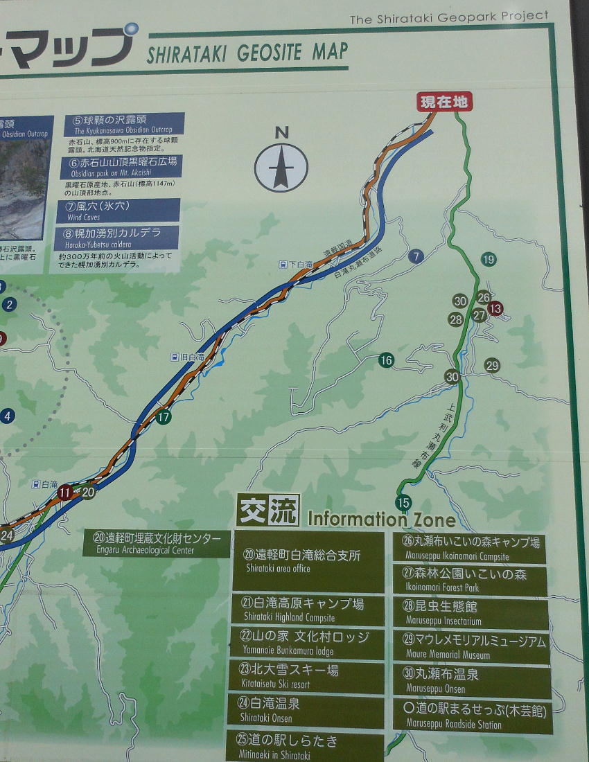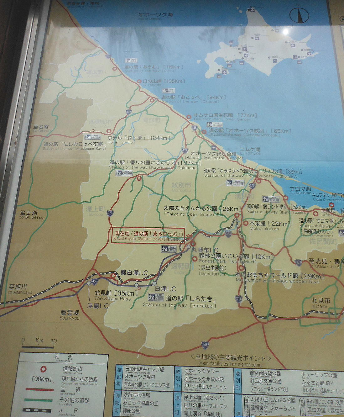 途中の道の駅にあった「白滝方面」(遠軽町:えんがるちょう)の案内板。