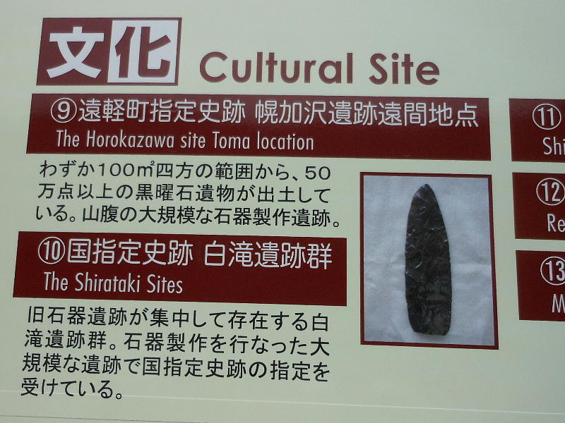 時代の代表的な遺跡であり、70あまりの遺物出土地点の総称でもある。十勝三股・置戸とならぶ黒曜石の