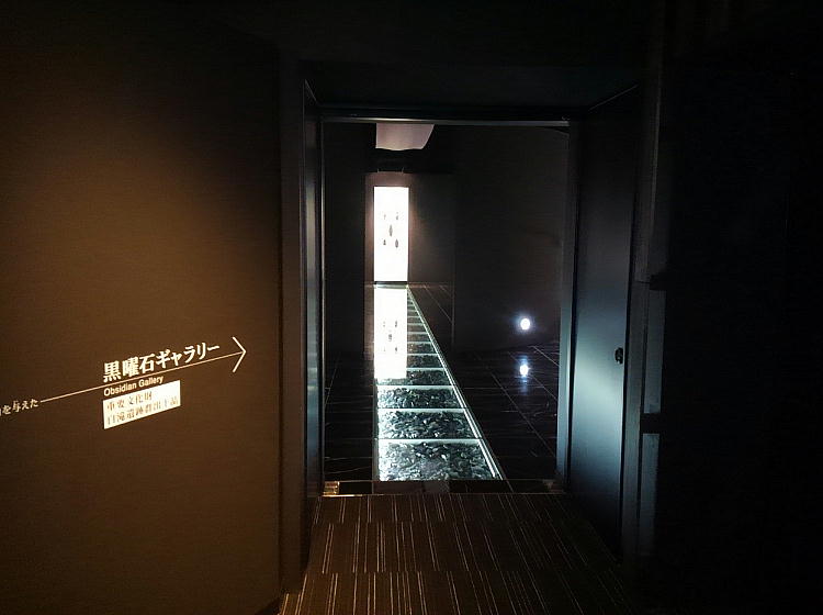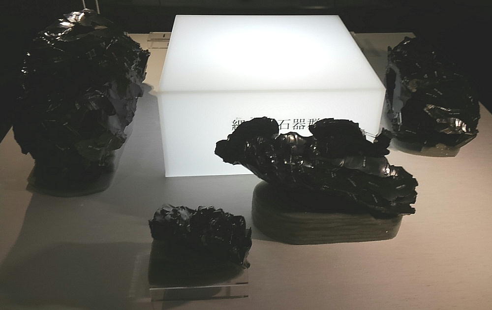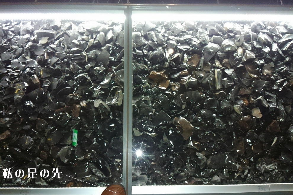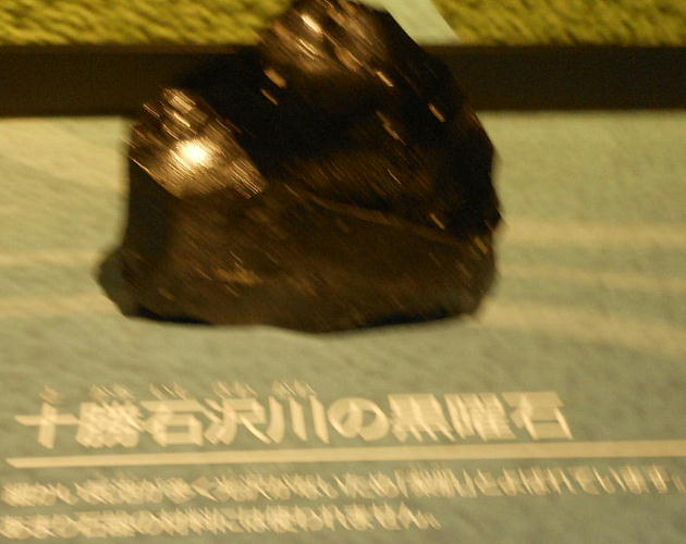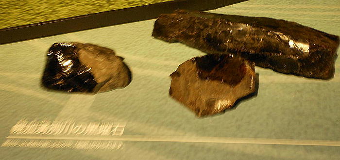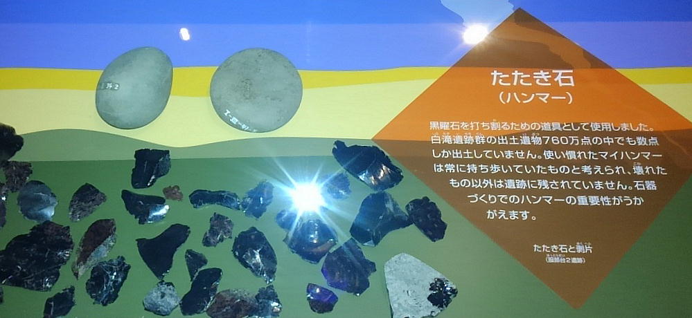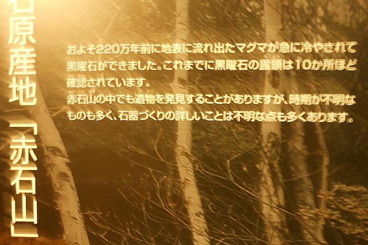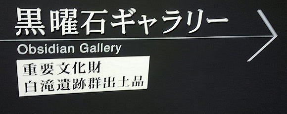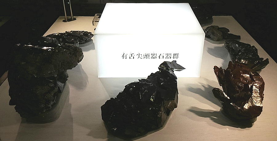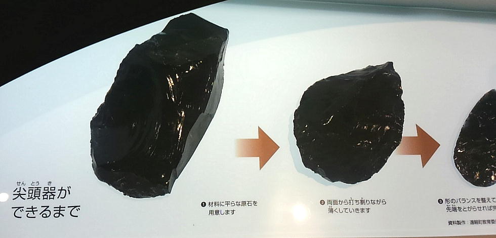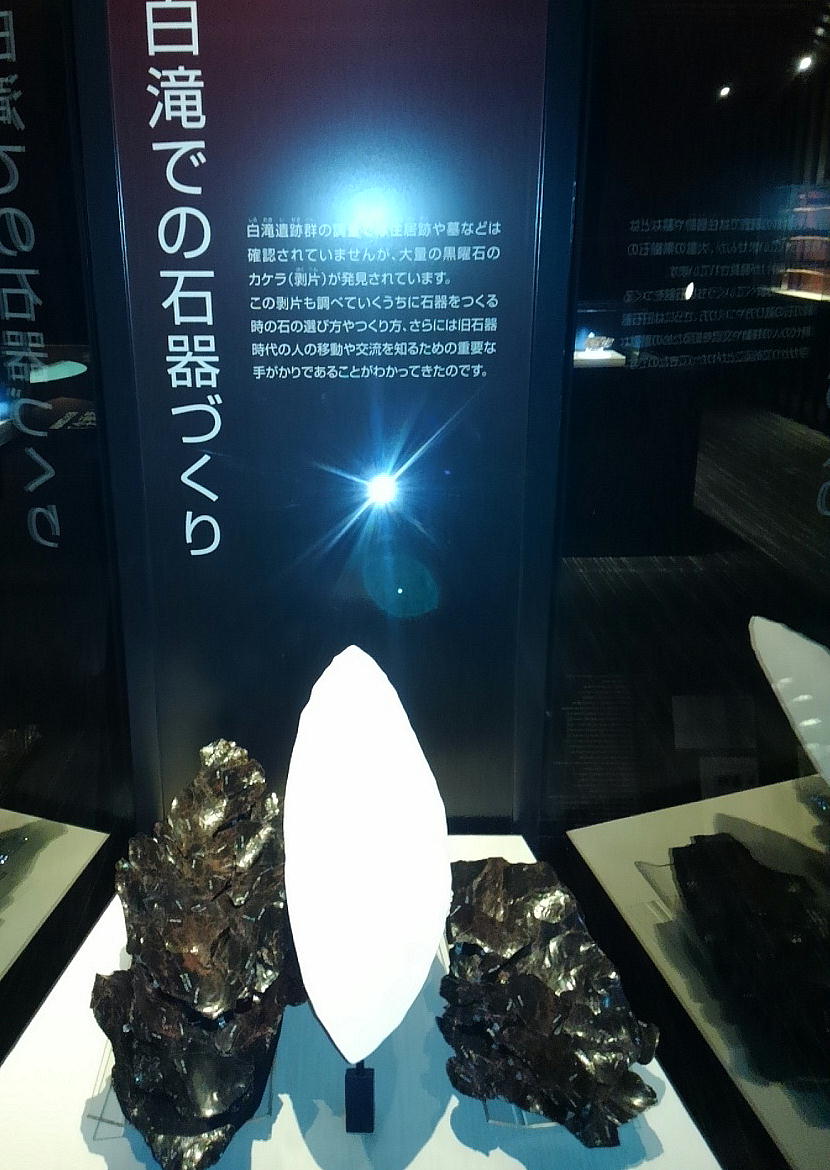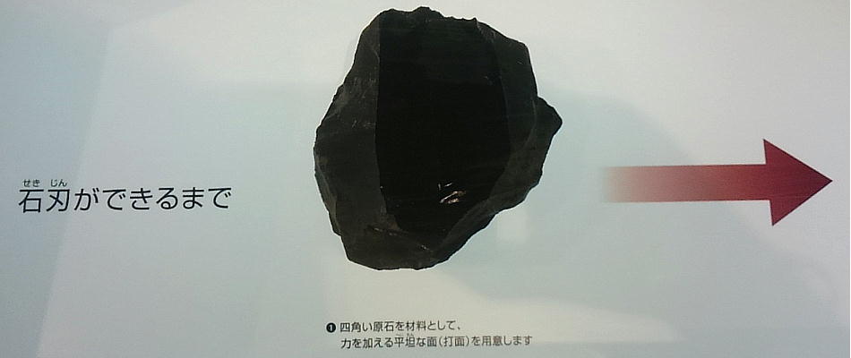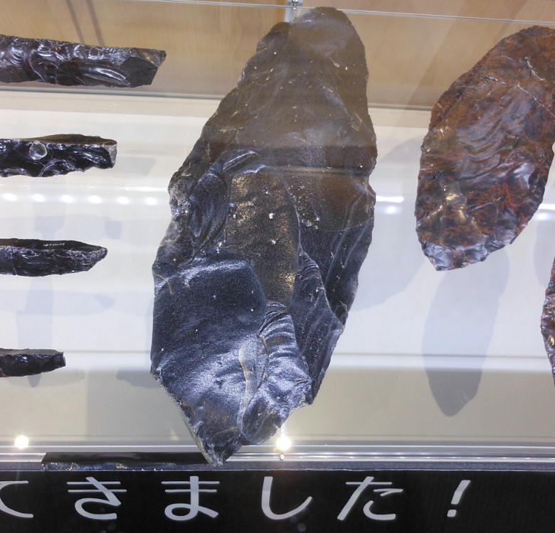 埋文センターへ入ると、正面にデッカイ黒曜石の石器が飾ってある。